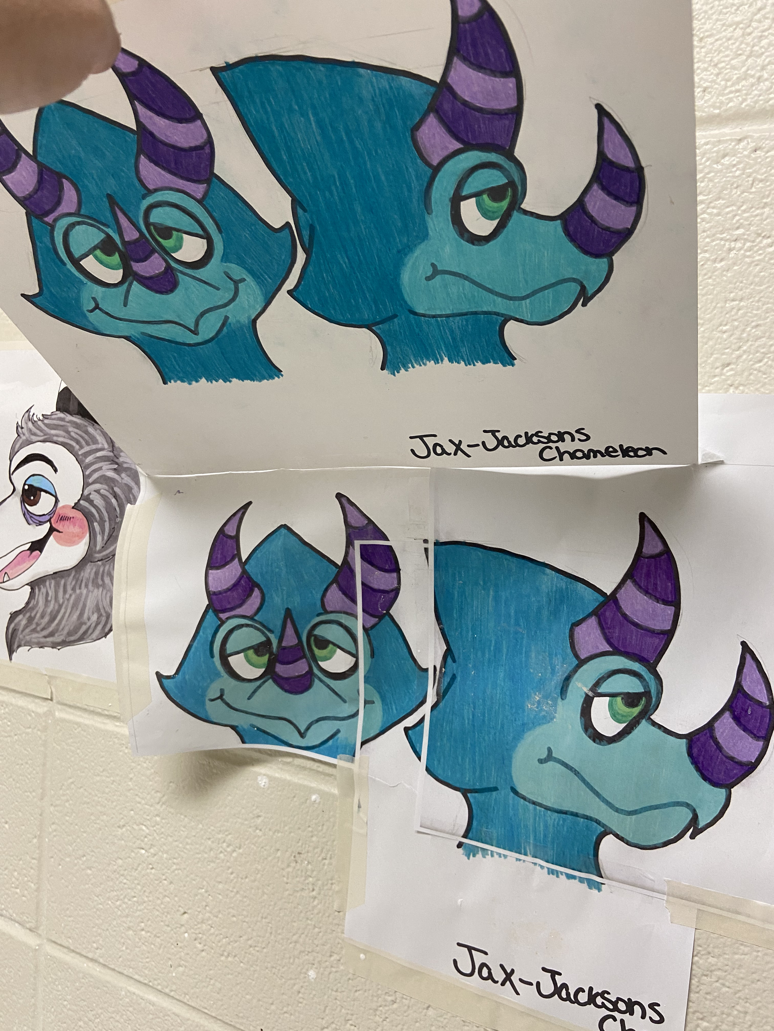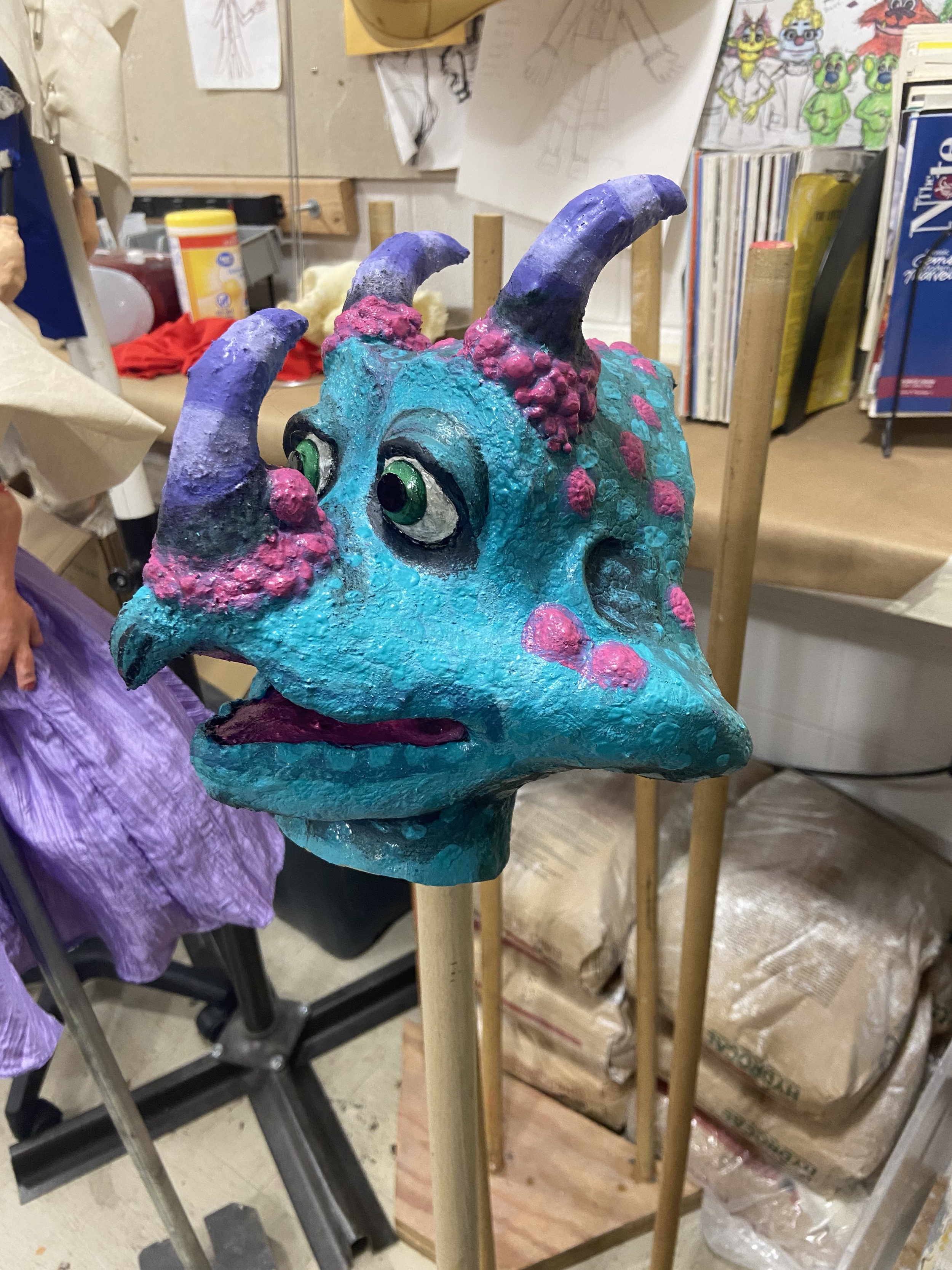 Second latex puppet design, Jax the Chameleon, later changed to Gwenolyth the Furmeleon.