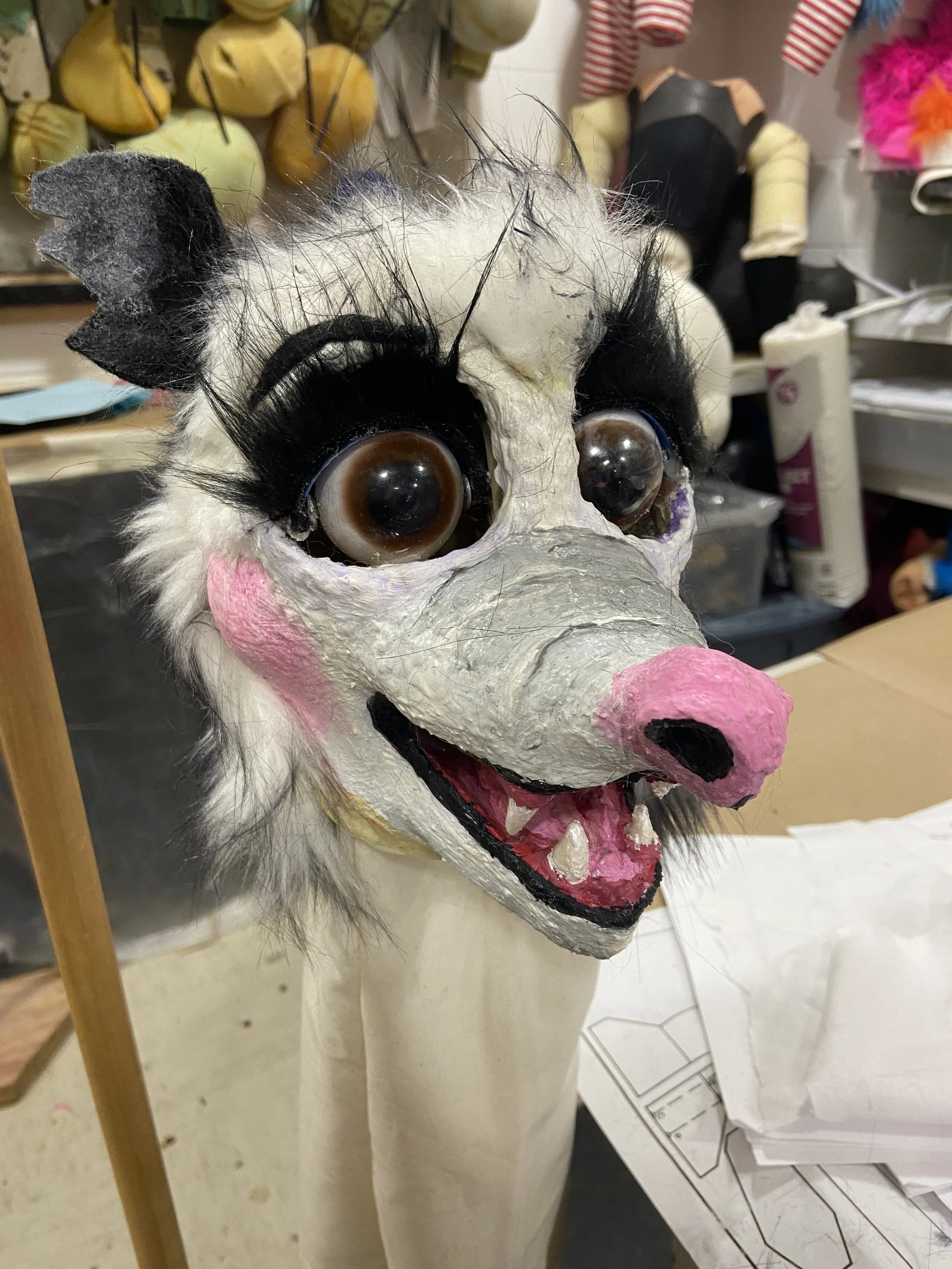 First latex puppet head design, Grimey the Opossum.
